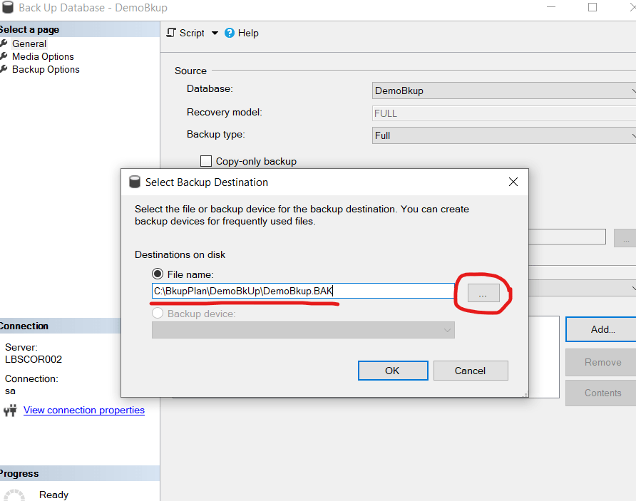 TO DISK = 'C:\BkupPlan\DemoBkUp\DemoBkup.BAK'
