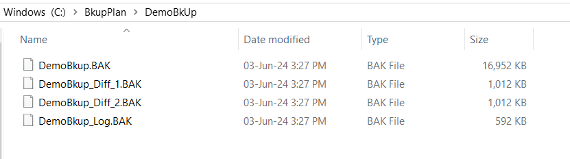 TO DISK = 'C:\BkupPlan\DemoBkUp\DemoBkup_Diff_1.BAK'