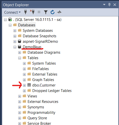 To start with, let’s create a test database with a single table. Ensure that C:\DemoBkup\ folder exists at your machine.